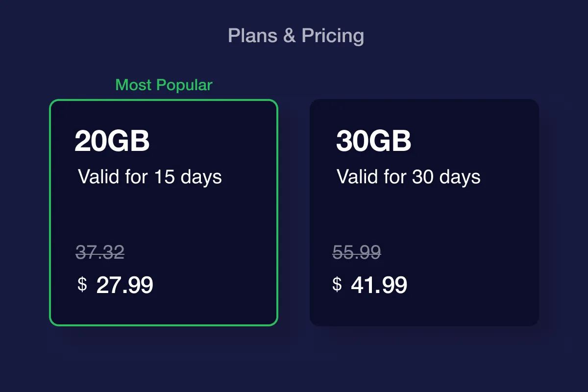 Choose the plan that suits your travel needs and place an order.